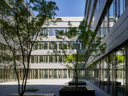 Das Gebäude wird über eine Tiefgaragenebene mit 91 Stellplätzen erschlossen und bietet auf insgesamt vier Ebenen mit jeweils ca. 2.000 m² und einem attraktiven Staffelgeschoss mit ca. 1.800 m² eine Gesamtmietfläche von ca. 9.800 m².